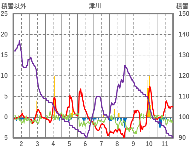 | 日 | 時 | 気温 | 降水 | 風向/風速 | 日照 | 積雪 | 降雪 |