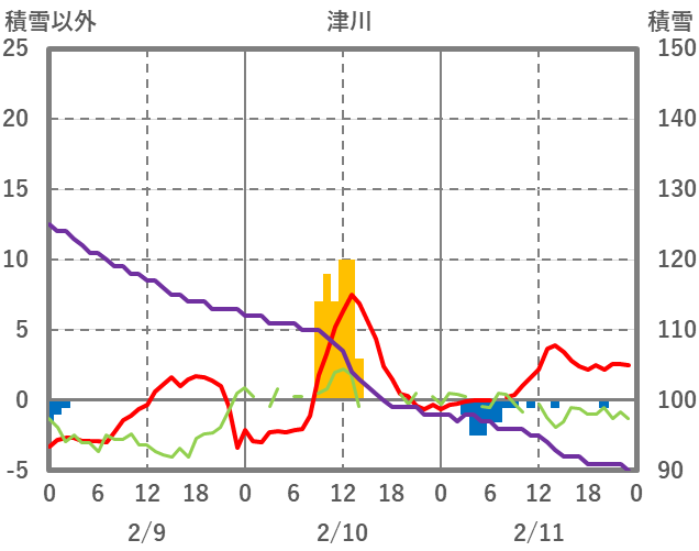 | 日 | 時 | 気温 | 降水 | 風向/風速 | 日照 | 積雪 | 降雪 |