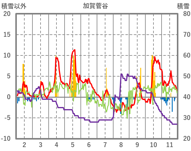 | 日 | 時 | 気温 | 降水 | 風向/風速 | 日照 | 積雪 | 降雪 |