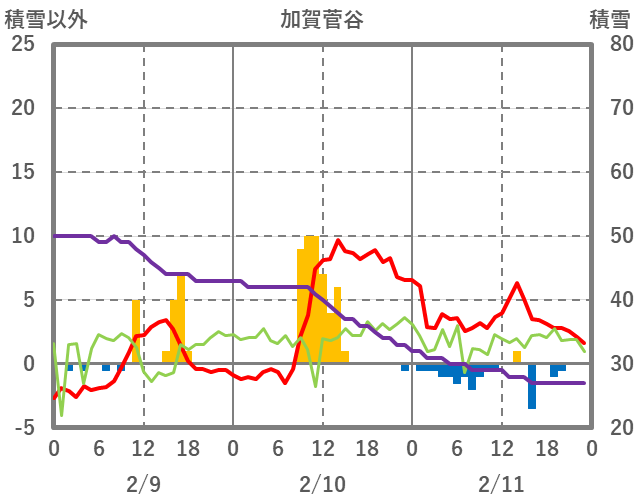 | 日 | 時 | 気温 | 降水 | 風向/風速 | 日照 | 積雪 | 降雪 |