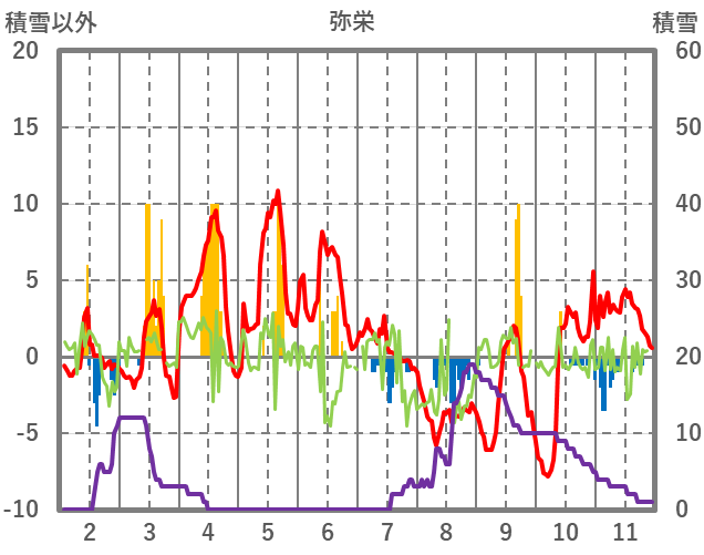 | 日 | 時 | 気温 | 降水 | 風向/風速 | 日照 | 積雪 | 降雪 |