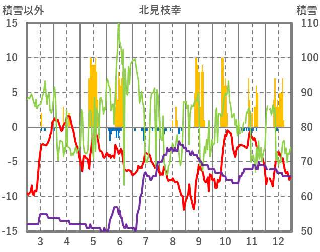 | 日 | 時 | 気温 | 降水 | 風向/風速 | 日照 | 積雪 | 降雪 |