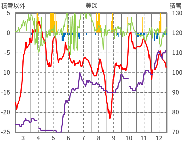| 日 | 時 | 気温 | 降水 | 風向/風速 | 日照 | 積雪 | 降雪 |