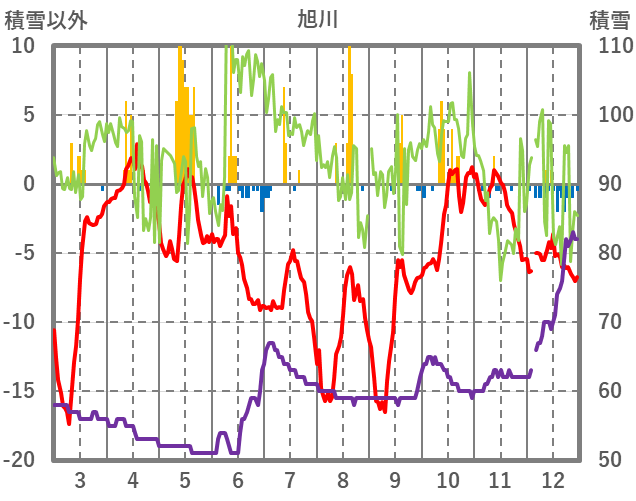 | 日 | 時 | 気温 | 降水 | 風向/風速 | 日照 | 積雪 | 降雪 |