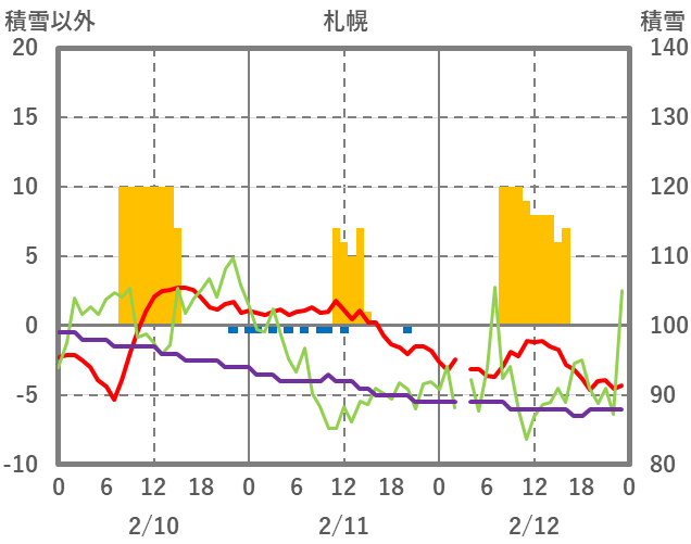 | 日 | 時 | 気温 | 降水 | 風向/風速 | 日照 | 積雪 | 降雪 |