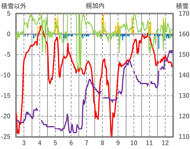 | 日 | 時 | 気温 | 降水 | 風向/風速 | 日照 | 積雪 | 降雪 |