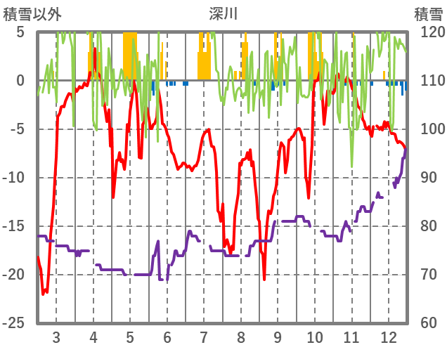 | 日 | 時 | 気温 | 降水 | 風向/風速 | 日照 | 積雪 | 降雪 |