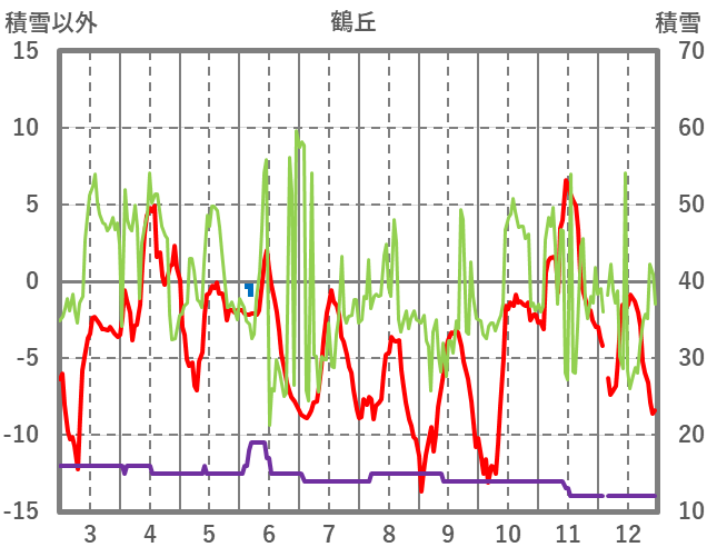 | 日 | 時 | 気温 | 降水 | 風向/風速 | 日照 | 積雪 | 降雪 |