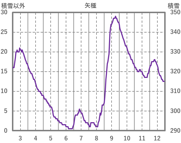 | 日 | 時 | 気温 | 降水 | 風向/風速 | 日照 | 積雪 | 降雪 |