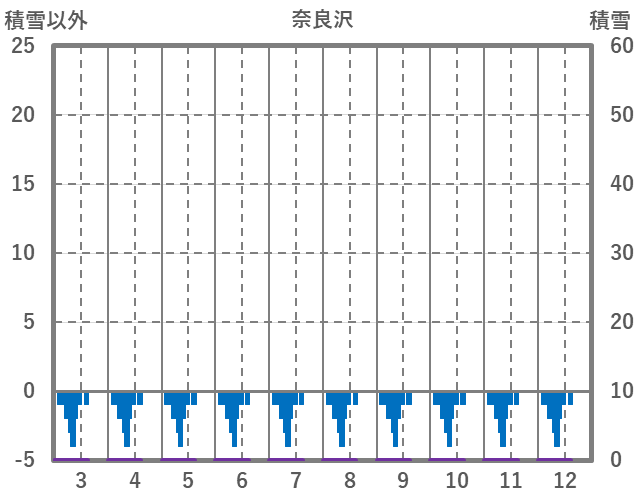 | 日 | 時 | 気温 | 降水 | 風向/風速 | 日照 | 積雪 | 降雪 |