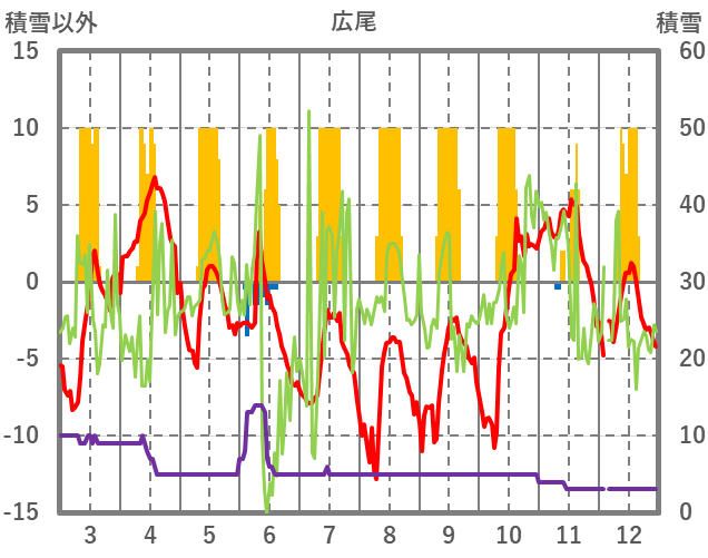 | 日 | 時 | 気温 | 降水 | 風向/風速 | 日照 | 積雪 | 降雪 |