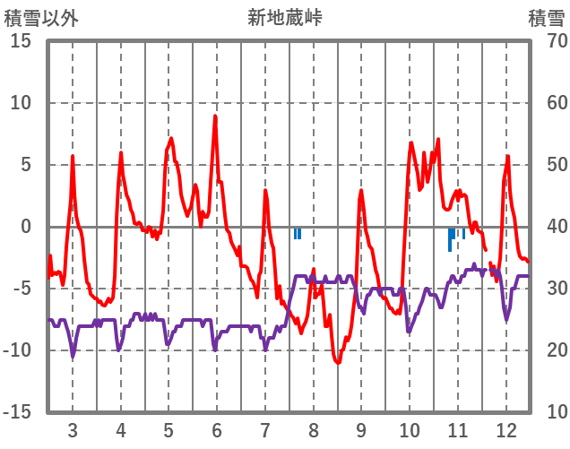 | 日 | 時 | 気温 | 降水 | 風向/風速 | 日照 | 積雪 | 降雪 |