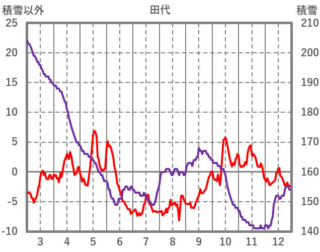 | 日 | 時 | 気温 | 降水 | 風向/風速 | 日照 | 積雪 | 降雪 |