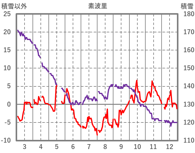| 日 | 時 | 気温 | 降水 | 風向/風速 | 日照 | 積雪 | 降雪 |