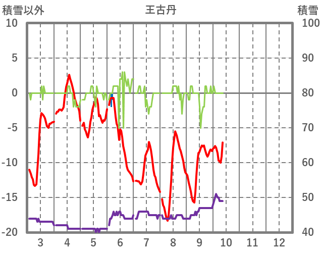 | 日 | 時 | 気温 | 降水 | 風向/風速 | 日照 | 積雪 | 降雪 |