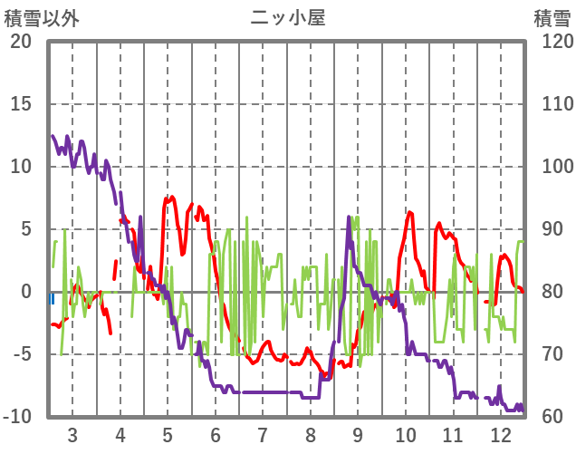 | 日 | 時 | 気温 | 降水 | 風向/風速 | 日照 | 積雪 | 降雪 |