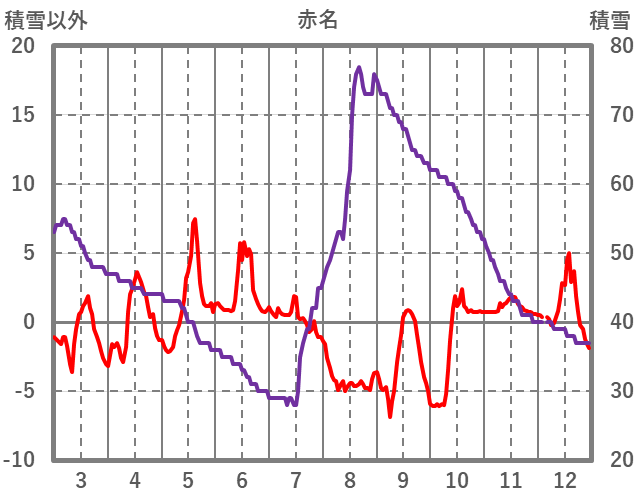 | 日 | 時 | 気温 | 降水 | 風向/風速 | 日照 | 積雪 | 降雪 |