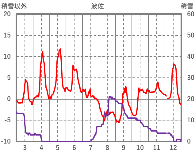 | 日 | 時 | 気温 | 降水 | 風向/風速 | 日照 | 積雪 | 降雪 |