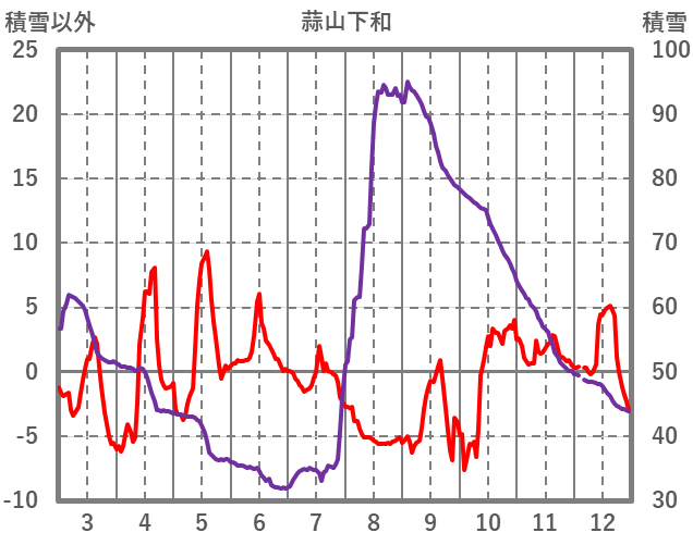 | 日 | 時 | 気温 | 降水 | 風向/風速 | 日照 | 積雪 | 降雪 |