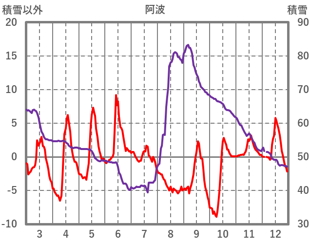 | 日 | 時 | 気温 | 降水 | 風向/風速 | 日照 | 積雪 | 降雪 |