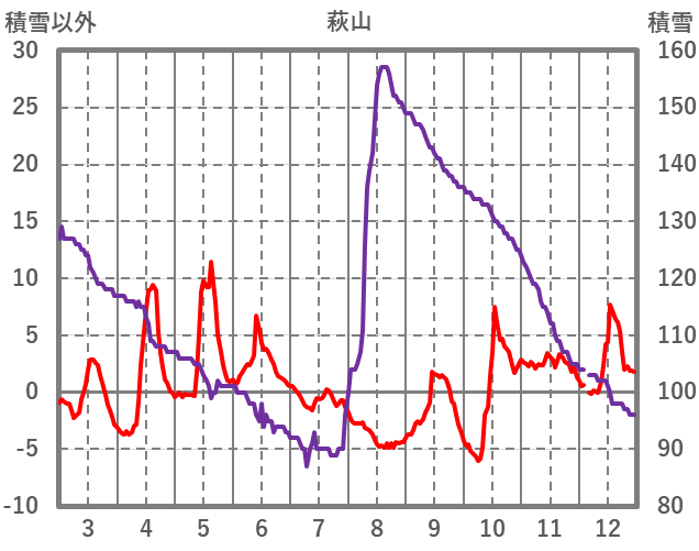| 日 | 時 | 気温 | 降水 | 風向/風速 | 日照 | 積雪 | 降雪 |