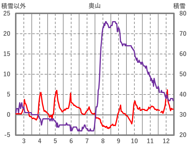 | 日 | 時 | 気温 | 降水 | 風向/風速 | 日照 | 積雪 | 降雪 |