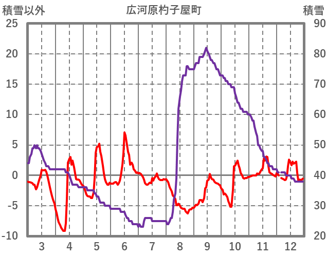 | 日 | 時 | 気温 | 降水 | 風向/風速 | 日照 | 積雪 | 降雪 |