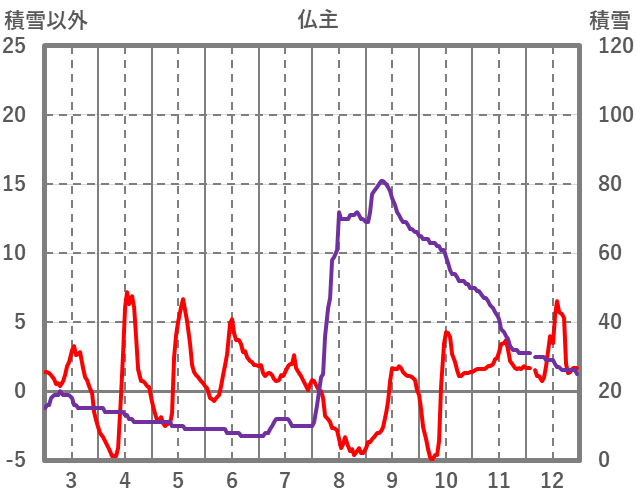 | 日 | 時 | 気温 | 降水 | 風向/風速 | 日照 | 積雪 | 降雪 |