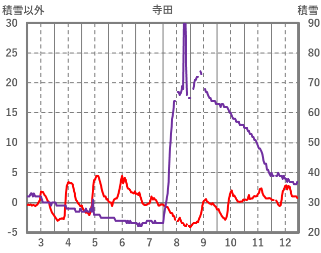 | 日 | 時 | 気温 | 降水 | 風向/風速 | 日照 | 積雪 | 降雪 |