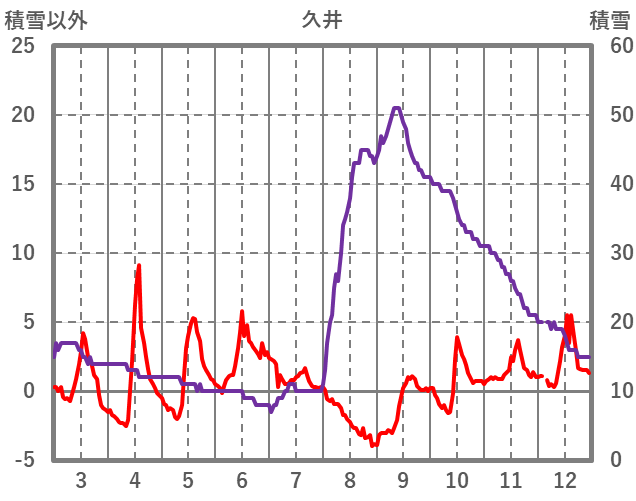 | 日 | 時 | 気温 | 降水 | 風向/風速 | 日照 | 積雪 | 降雪 |