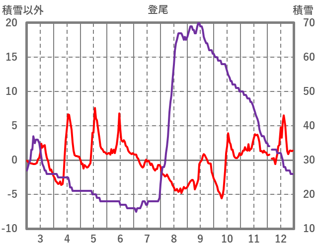 | 日 | 時 | 気温 | 降水 | 風向/風速 | 日照 | 積雪 | 降雪 |
