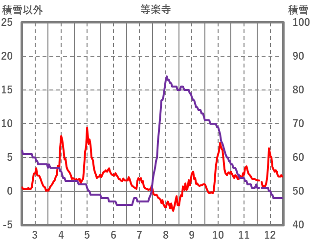 | 日 | 時 | 気温 | 降水 | 風向/風速 | 日照 | 積雪 | 降雪 |