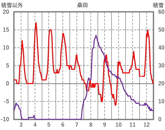 | 日 | 時 | 気温 | 降水 | 風向/風速 | 日照 | 積雪 | 降雪 |