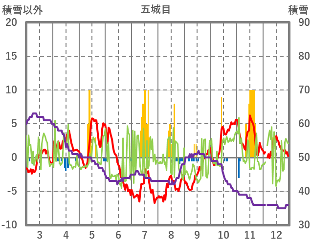 | 日 | 時 | 気温 | 降水 | 風向/風速 | 日照 | 積雪 | 降雪 |