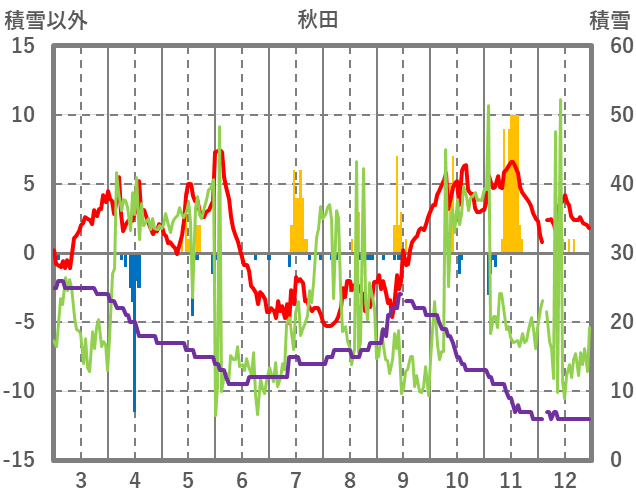 | 日 | 時 | 気温 | 降水 | 風向/風速 | 日照 | 積雪 | 降雪 |
