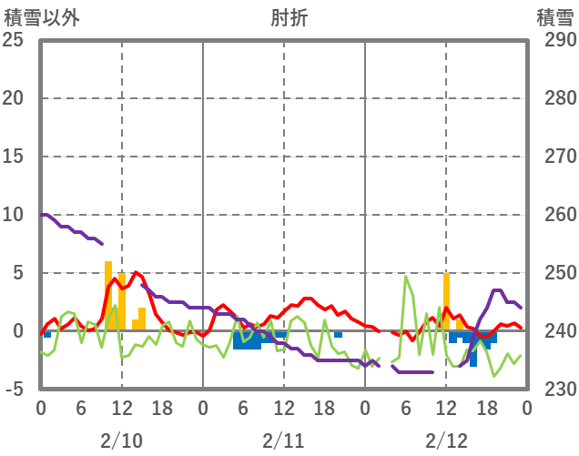| 日 | 時 | 気温 | 降水 | 風向/風速 | 日照 | 積雪 | 降雪 |