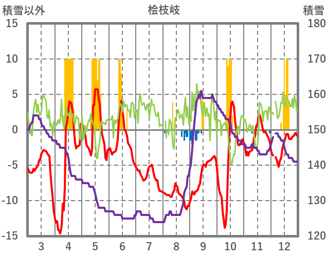 | 日 | 時 | 気温 | 降水 | 風向/風速 | 日照 | 積雪 | 降雪 |