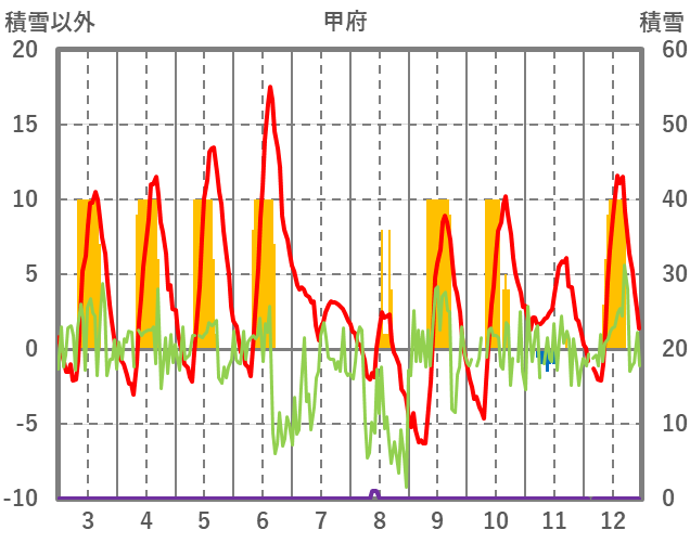 | 日 | 時 | 気温 | 降水 | 風向/風速 | 日照 | 積雪 | 降雪 |
