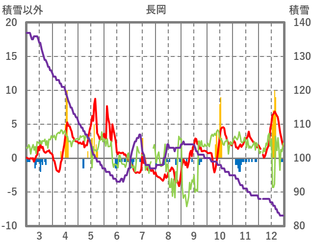 | 日 | 時 | 気温 | 降水 | 風向/風速 | 日照 | 積雪 | 降雪 |