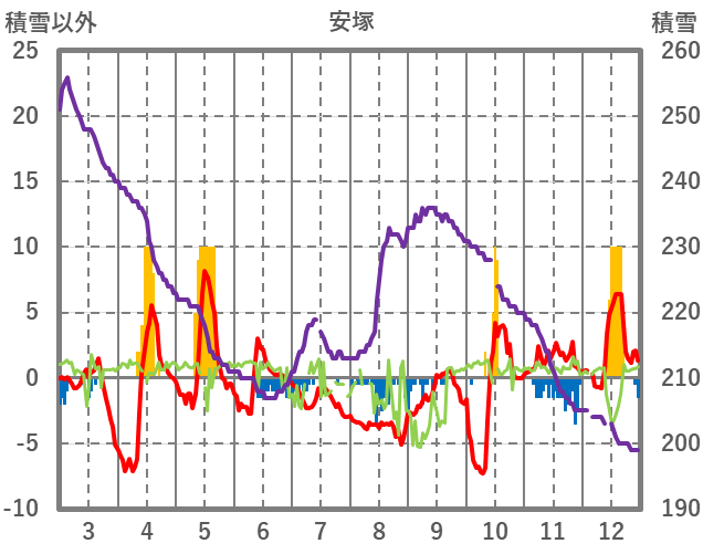 | 日 | 時 | 気温 | 降水 | 風向/風速 | 日照 | 積雪 | 降雪 |