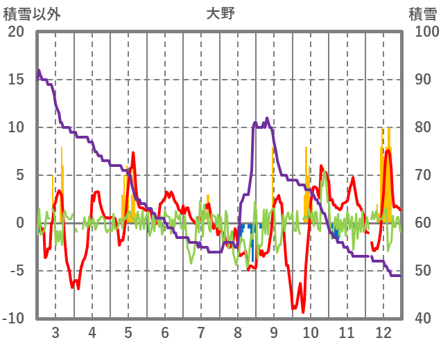 | 日 | 時 | 気温 | 降水 | 風向/風速 | 日照 | 積雪 | 降雪 |