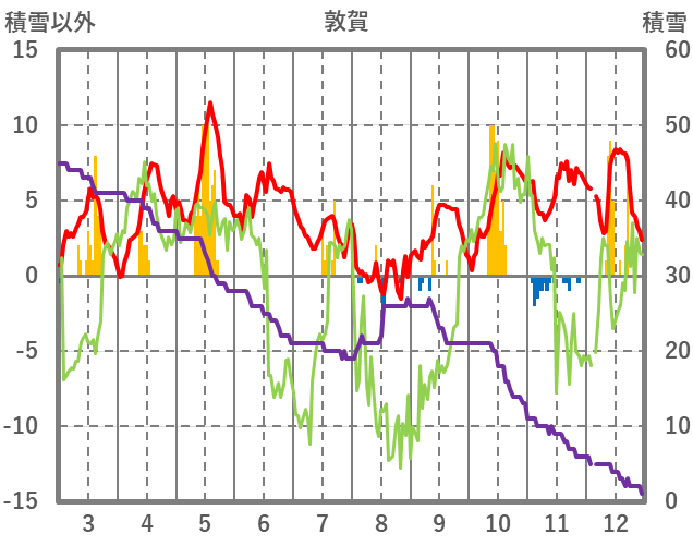 | 日 | 時 | 気温 | 降水 | 風向/風速 | 日照 | 積雪 | 降雪 |