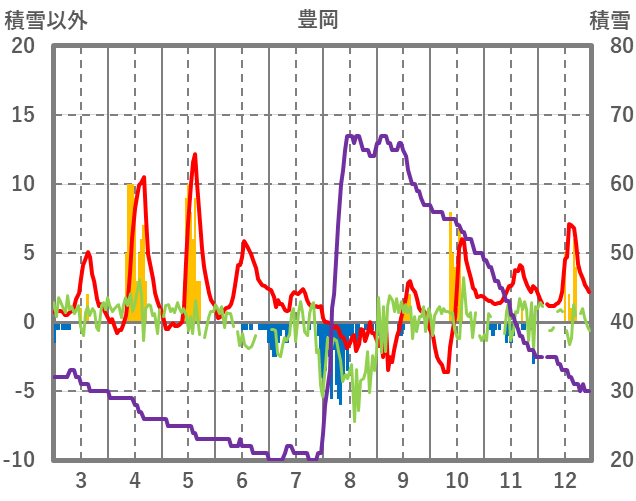 | 日 | 時 | 気温 | 降水 | 風向/風速 | 日照 | 積雪 | 降雪 |