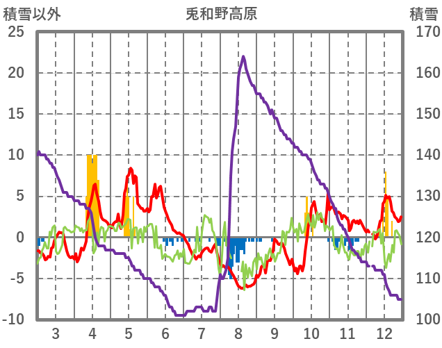 | 日 | 時 | 気温 | 降水 | 風向/風速 | 日照 | 積雪 | 降雪 |