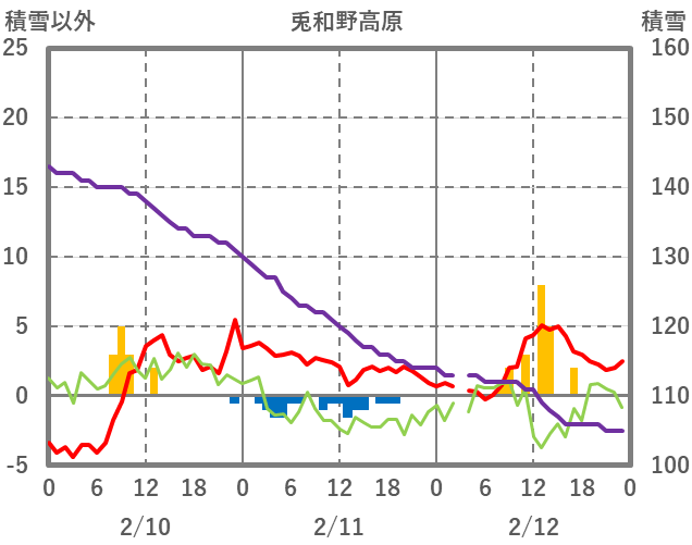 | 日 | 時 | 気温 | 降水 | 風向/風速 | 日照 | 積雪 | 降雪 |