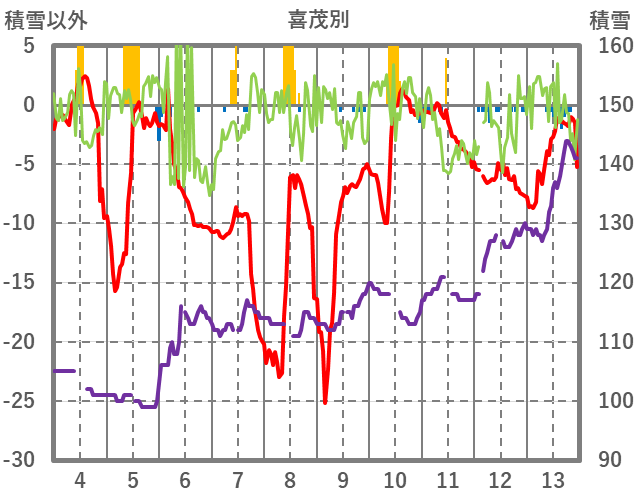 | 日 | 時 | 気温 | 降水 | 風向/風速 | 日照 | 積雪 | 降雪 |