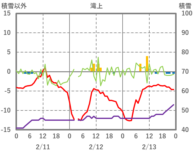 | 日 | 時 | 気温 | 降水 | 風向/風速 | 日照 | 積雪 | 降雪 |