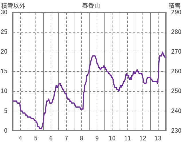 | 日 | 時 | 気温 | 降水 | 風向/風速 | 日照 | 積雪 | 降雪 |