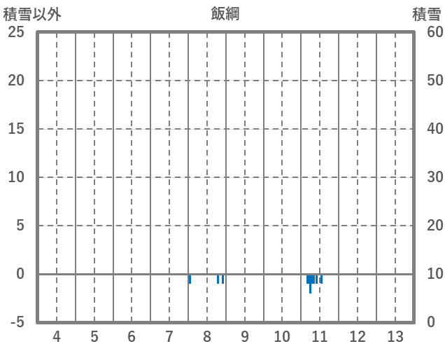 | 日 | 時 | 気温 | 降水 | 風向/風速 | 日照 | 積雪 | 降雪 |