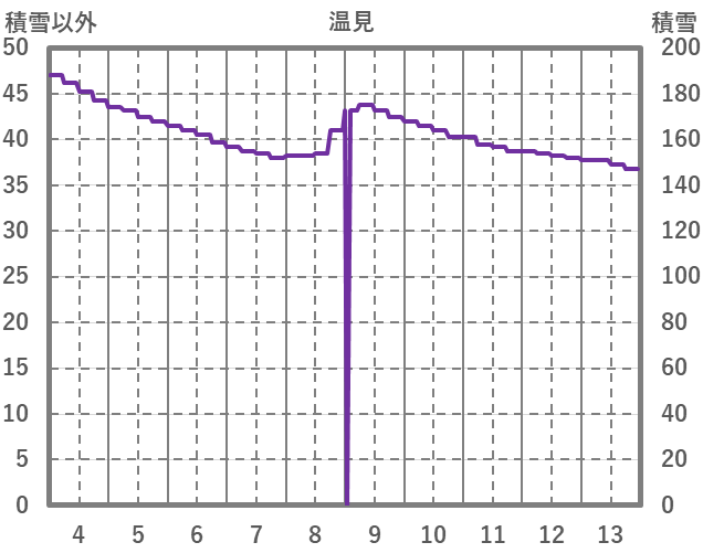 | 日 | 時 | 気温 | 降水 | 風向/風速 | 日照 | 積雪 | 降雪 |